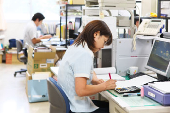 総務課は開院当初5名でしたが、現在、事務長の下、総務係2名、経理係2名、資材係2名、施設係2名、図書係1名、企画広報係1名の計11名です。総務課の業務は経営・財務管理、人事、経理、給与計算、各種保険の手続、建物の管理、設備・備品の購入管理など多岐にわたっています。